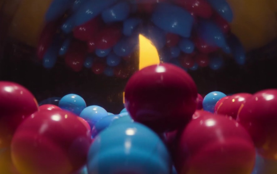 - 빨간색과 파란색 공을 뽑는 장면은 새로운 게임의 시작을 암시합니다. 두 색이 상징하는 것이 무엇인지, 각각의 공이 어떤 역할을 하게 될지 궁금증을 자아냅니다.